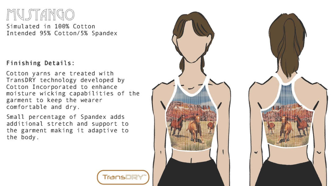 Saltillo utilizes finishes for cotton fabrics developed by Cotton Incorporated. These enhancements make the cotton fiber makeup competitive and advantageous to the activewear market that is currently dominated by synthetic fibers.