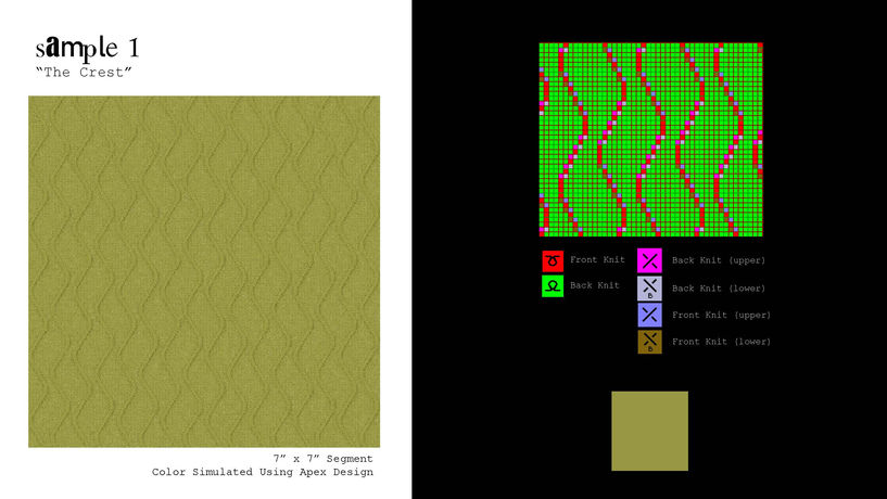 Each sample uses hand dyed techniques simulated in photoshop, complex and refined knit structures, and luxury quality materials that make them suitable for high-end apparel applications.